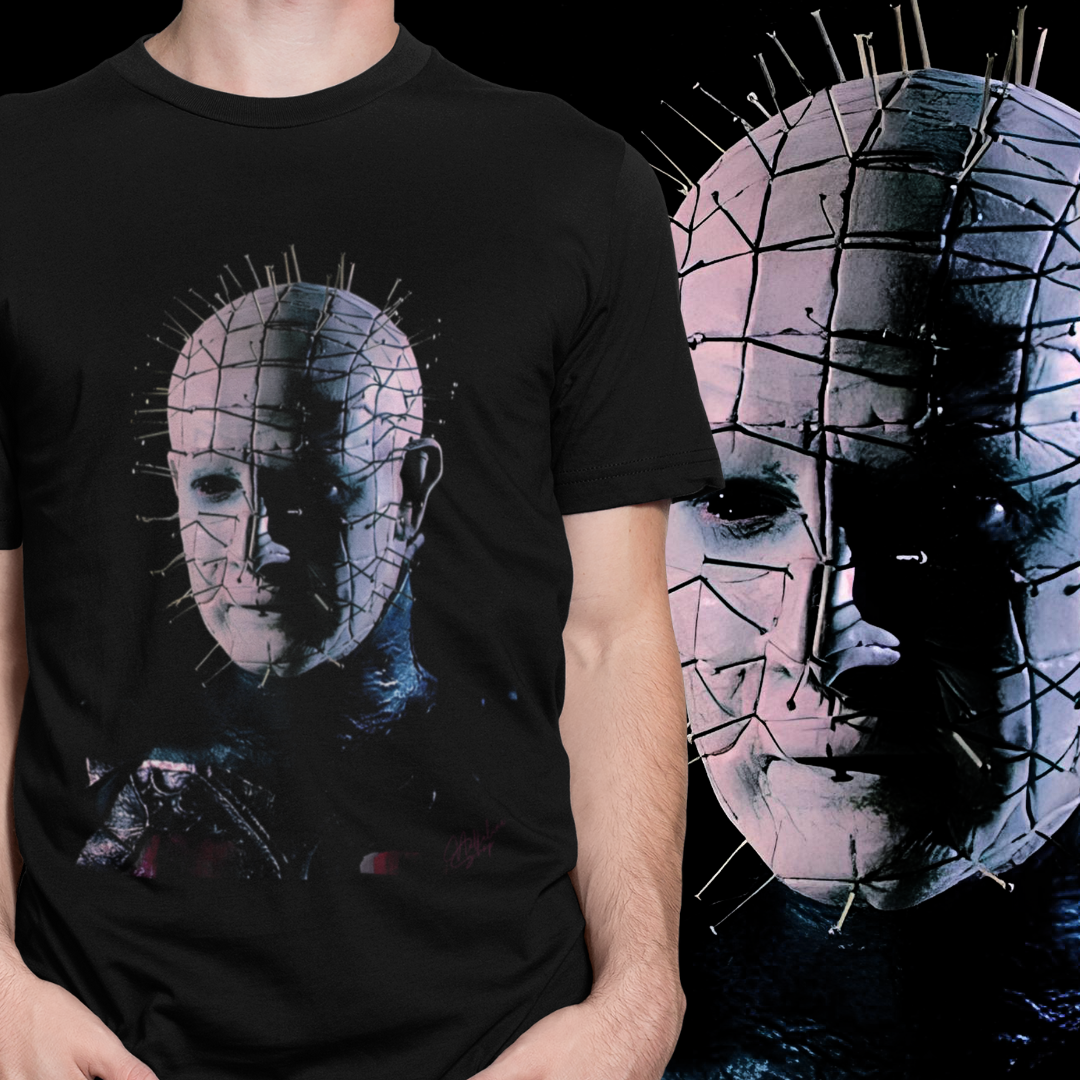 Coleção Vilões Que Amamos #VQA - Cenobita Pinhead. Diretamente da franquia Hellraiser, nossa camiseta é confeccionada em tecido confortável (100% Algodão) e com estampa de alta qualidade (DTG). Esta é a peça que faltava no seu guarda-roupas!